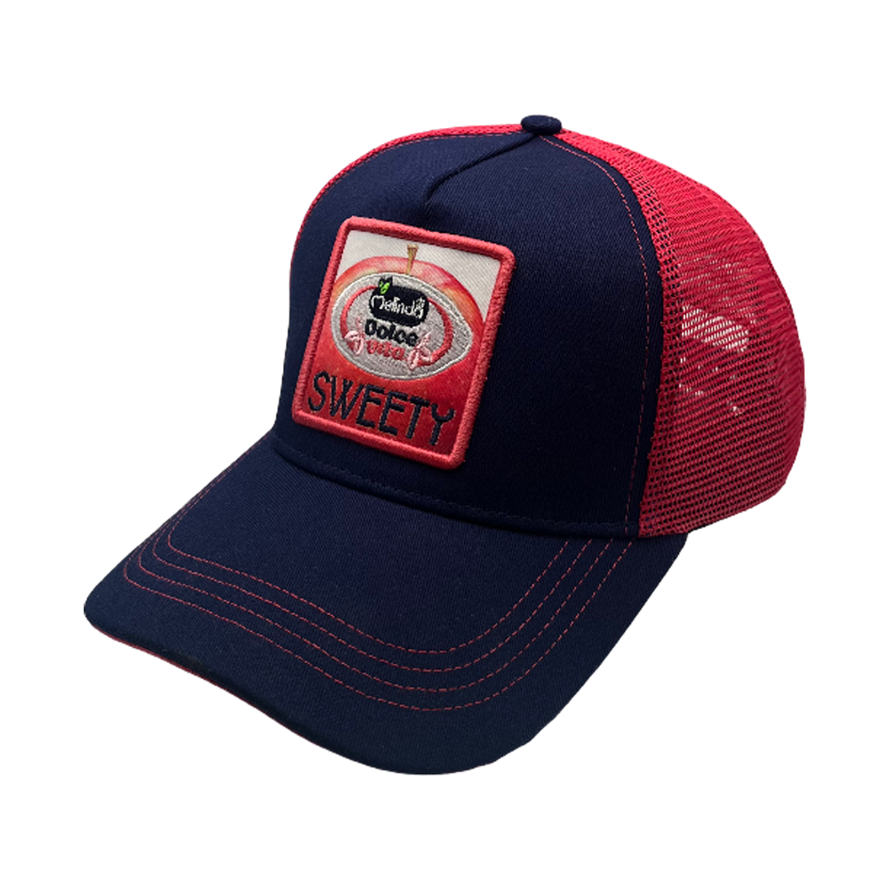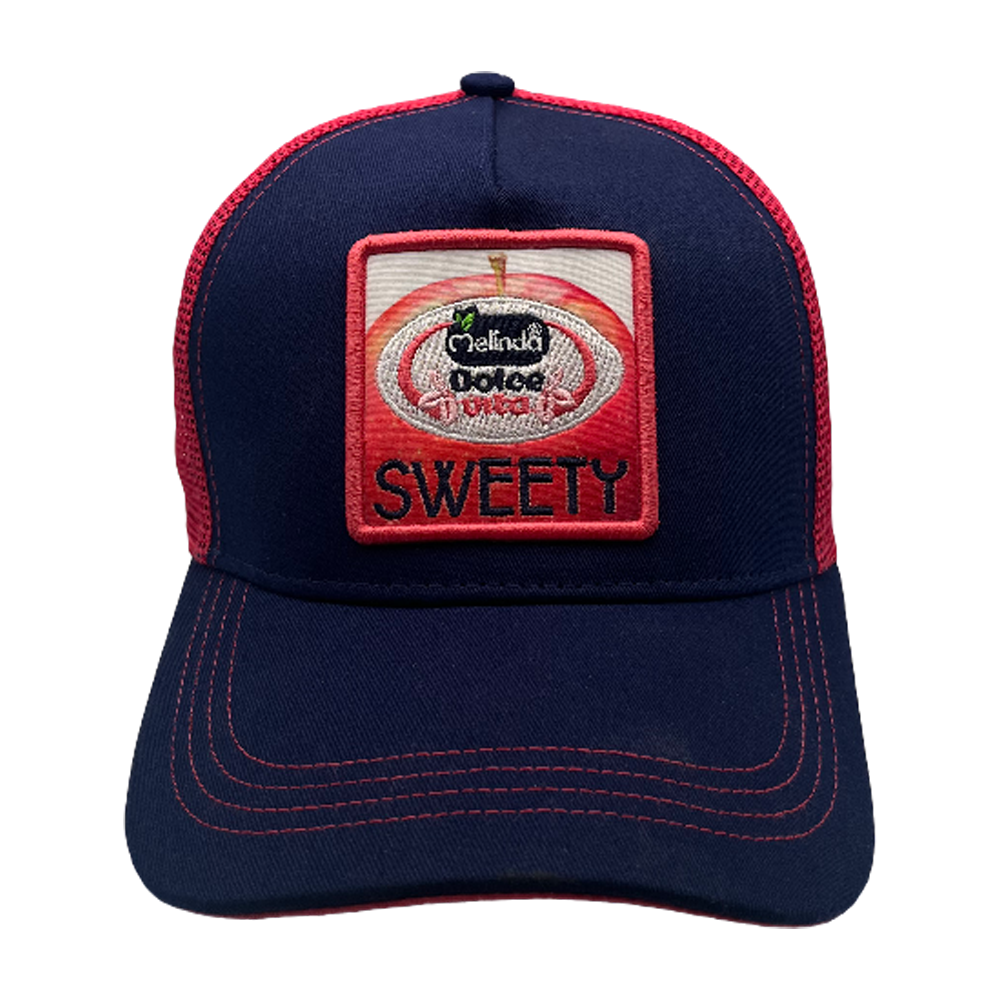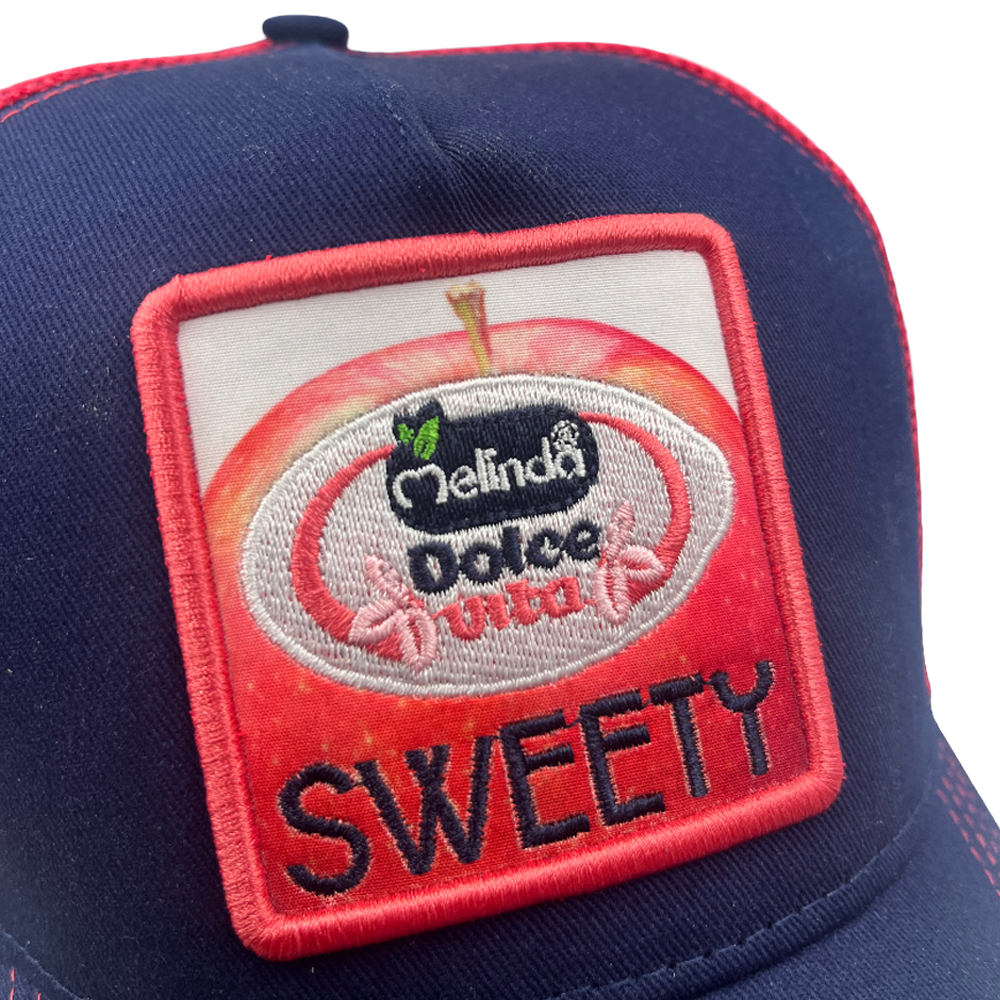 Una patch di alta qualità che combina stampa nitida e ricamo in rilievo, riproducendo l'iconica mela Dolce Vita su fondo "Sweety".